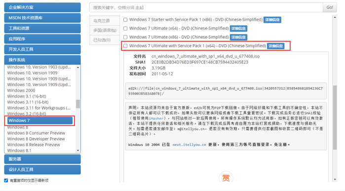10.在界面中直接找到想要下載的鏡像文件,小編直接選擇win7 sp1 旗艦版 64位系統。