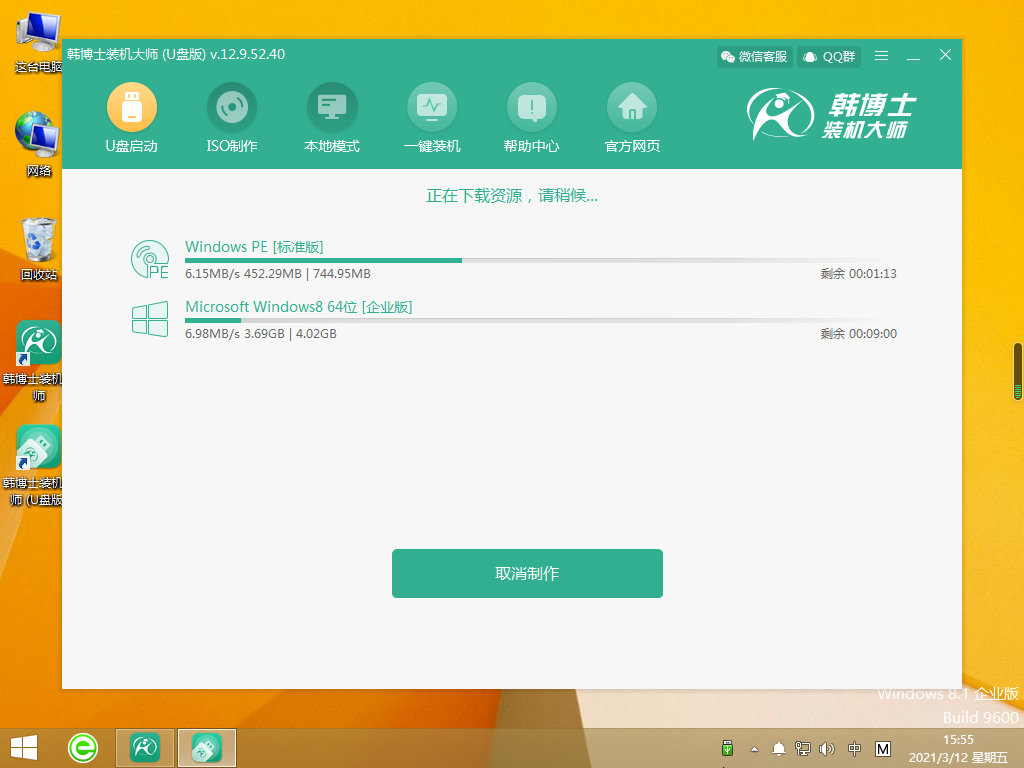 3.韓博士開始下載系統(tǒng)文件,該過程需要耗費一些時間,請稍作等待。