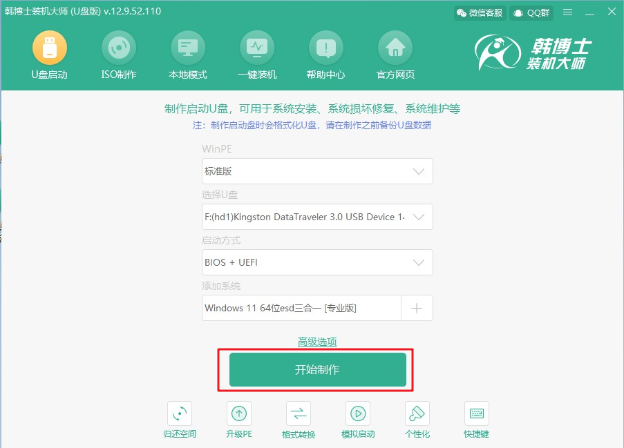 以上就是U盤怎么安裝win11系統的詳細方法和步驟了,如果你也有需要使用U盤給電腦重裝win11系統的,可以參考上面的教程。如果在重裝的過程遇到問題的話,可以咨詢官網的技術客服,會耐心為你解答!韓博博士裝機大師是一款支持一鍵云U盤啟動制作,安全可靠的裝機軟件。