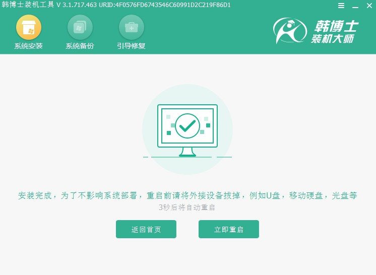 5.安裝完成,拔出U盤,然后點擊“立即重啟”。