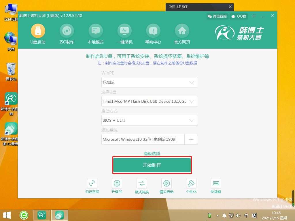 1.制作韓博士u盤啟動(dòng)盤的時(shí)候,記住要先退出電腦里的殺毒軟件。